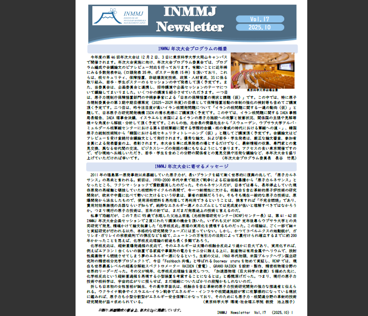 日本核物質管理学会(INMMJ)第46回年次大会開催のご案内(第2報)