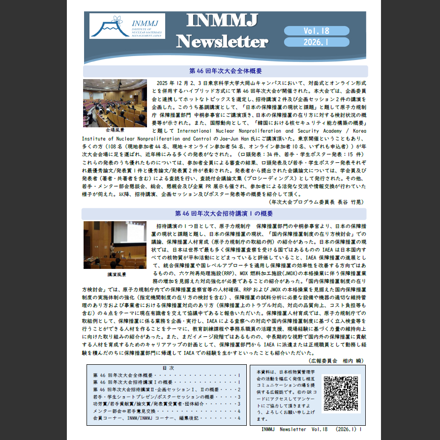 Newsletter Vol.18を発刊しましたのでご高覧願います。